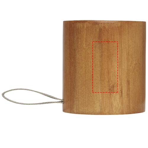 Bamboo Bluetooth® speaker with a 3W output and excellent sound quality. The built-in 500 mAh battery allows up to 3 hours of usage at maximum volume on a single charge. Bluetooth® 5.0 working range is up to 10 meters. Packaged in a gift box and delivered with an instruction manual (both made of sustainable material). Micro-USB charging cable is included. Since bamboo is a natural product, there may be slight variations in colour and size per item, which may affect the final decoration outcome.