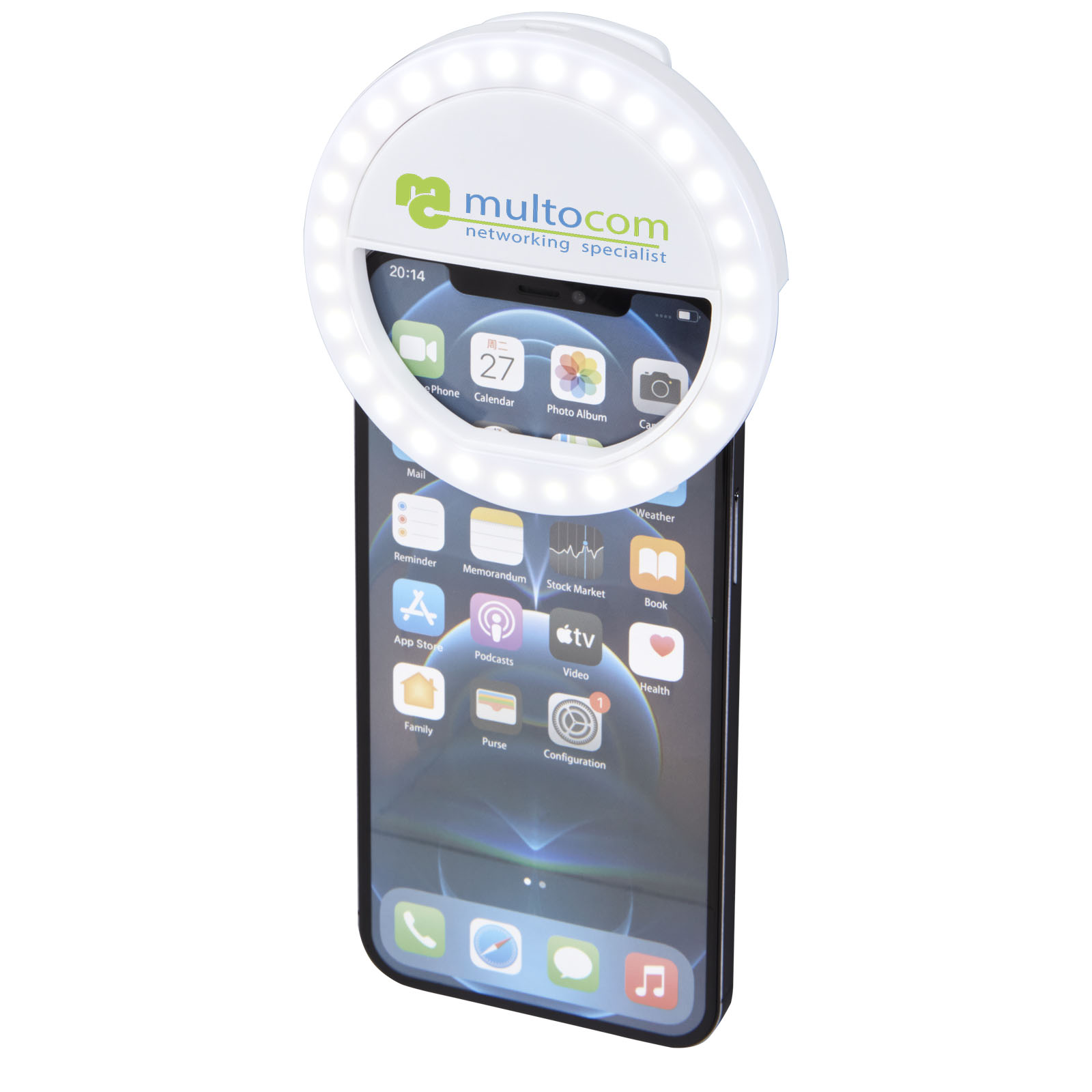 Portable selfie light 28 LEDs that can easily be installed on a phone or laptop screen with an clip function. A must-have gadget for any video/vlog maker or anyone that enjoys taking pictures. The white light is adjustable in 3 different brightness levels for the perfect light exposure. The 28 LEDs are positioned in a circle, providing light evenly across the face. The selfie-light has a capacity of at least 30 minutes at max brightness.