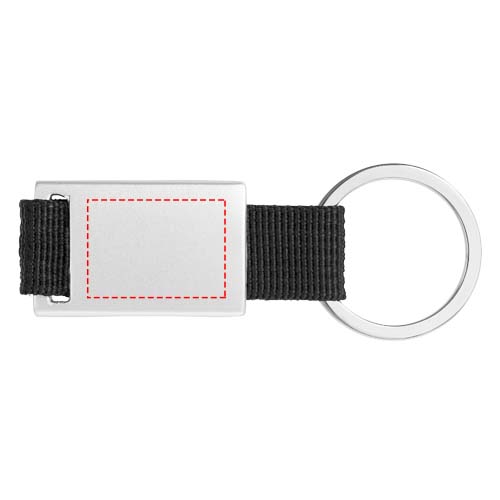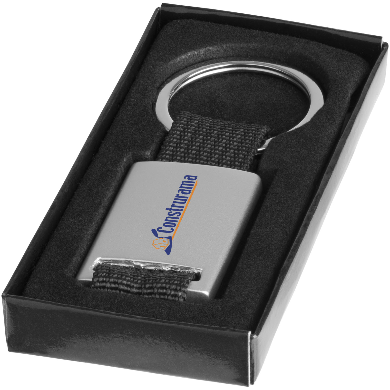 Rectangular key chain. Keep your keys safe with this attractive modern key chain. Aluminium with coloured polyester webbing. Includes a black gift box.