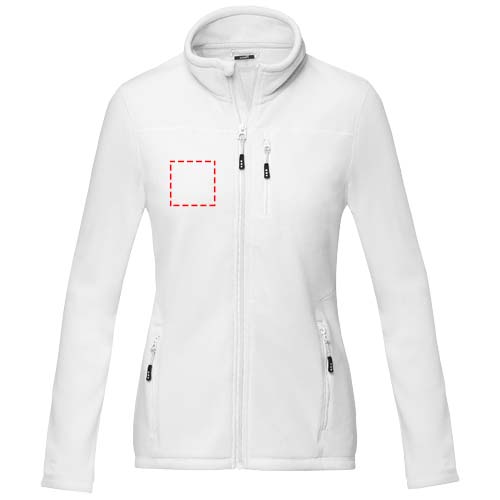 The Amber women's GRS recycled full zip fleece jacket – a perfect fushion of style, sustainability, and functionality. Made with a commitment to eco-consciousness, this jacket features a GRS recycled center front zipper coil for a sleek and durable closure. The inner stormflap with chinguard provides extra protection against the elements. The jacket has front pockets with secure zippers, allowing you to carry essentials with ease, and the chest pocket with zipper closure adds a touch style. Made from 174 g/m² GRS certified recycled polyester, the Amber fleece jacket is the perfect balance between sustainability, warmth and lightness. Elevate your outdoor adventures with this remarkable jacket that embodies both sustainability and sophistication. The GRS certification ensures a 100% certified supply chain, from raw material to our printing techniques, making this garment a more sustainable choice. This jacket is designed with a fitted shape for a feminine look.