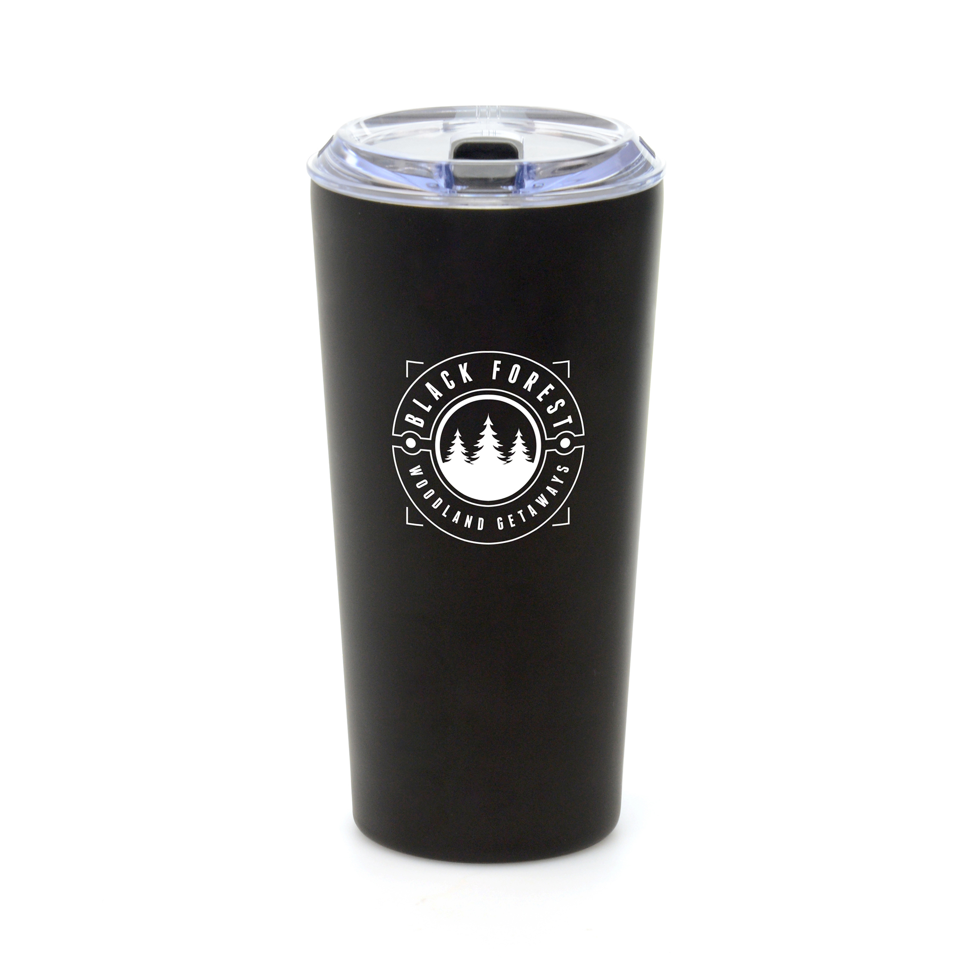 500ml double walled stainless steel tumbler with clear plastic push on lid with handy black sliding sipper to prevent spills on the go. Sleek, simple and sturdy stainless steel design, perfect to complement your company logo. Lid contains PP plastic, AS plastic and silicone. BPA and PVC free.
