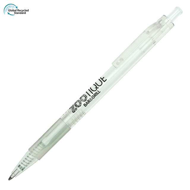 A pen made from recycled plastic bottles (Rpet). Produced in several colours with pre-printed text - "Recycled PET"