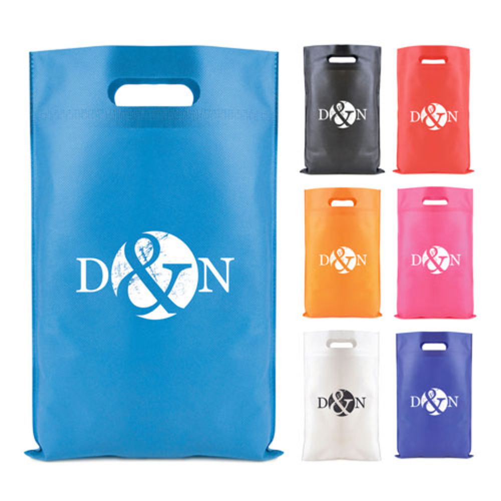 Recyclable 80gsm non woven PP catalogue bag with built in handles and machine heat sealed finish. An ideal low cost catalogue bag for use at shows and exhibitions.