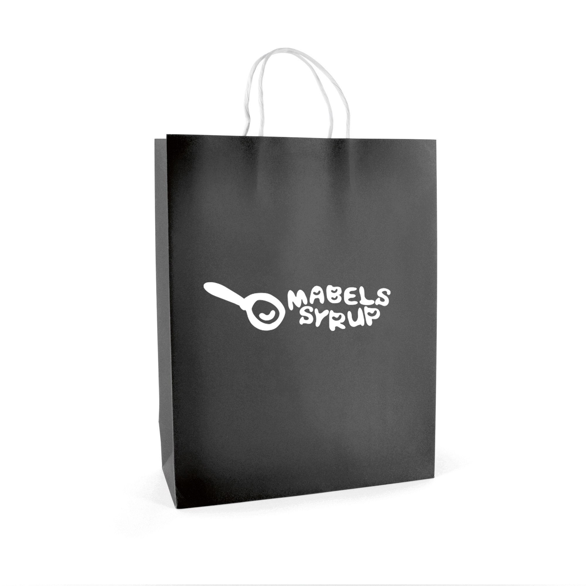 230gsm large coloured paper bag with paper twisted handles and gusset. Fantastic size with a fantastic personalisation area.