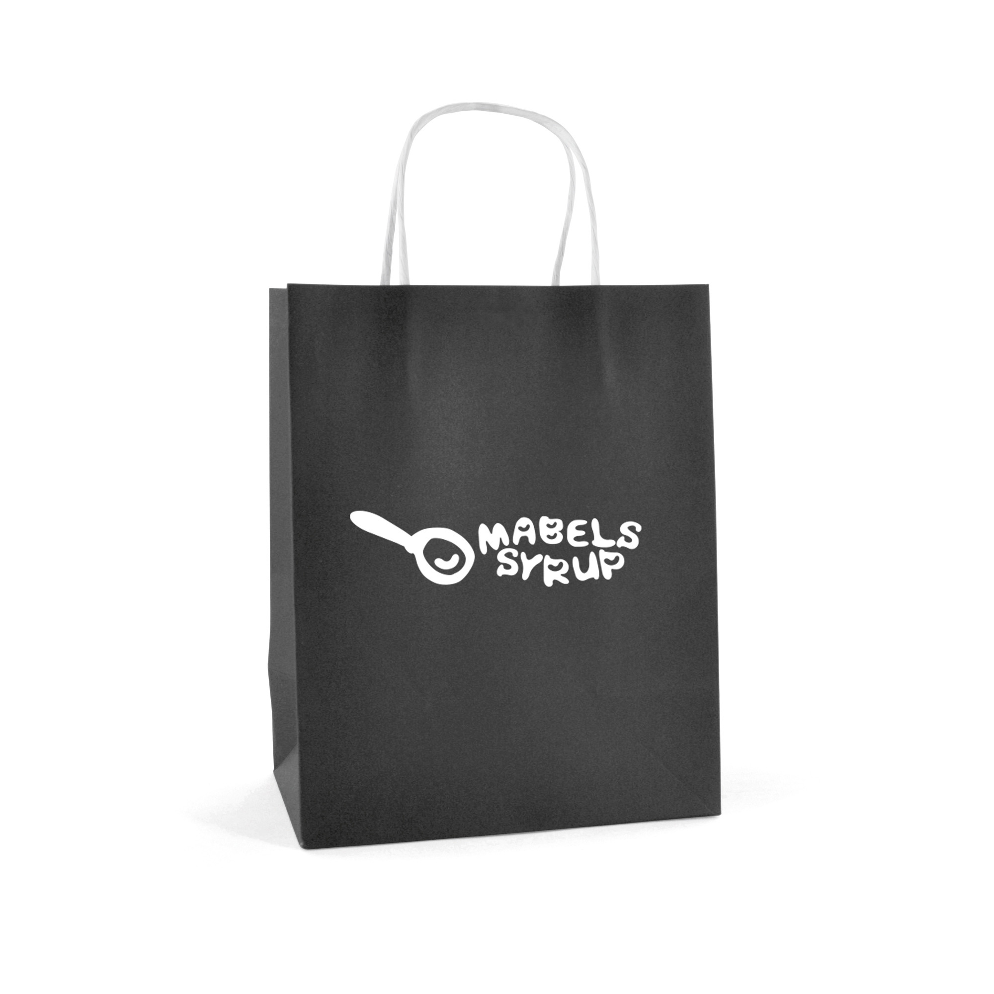 230gsm medium sized coloured paper bag with paper twisted handles and gusset. The ideal promotional gift bag with great personalisation area to carry your message.