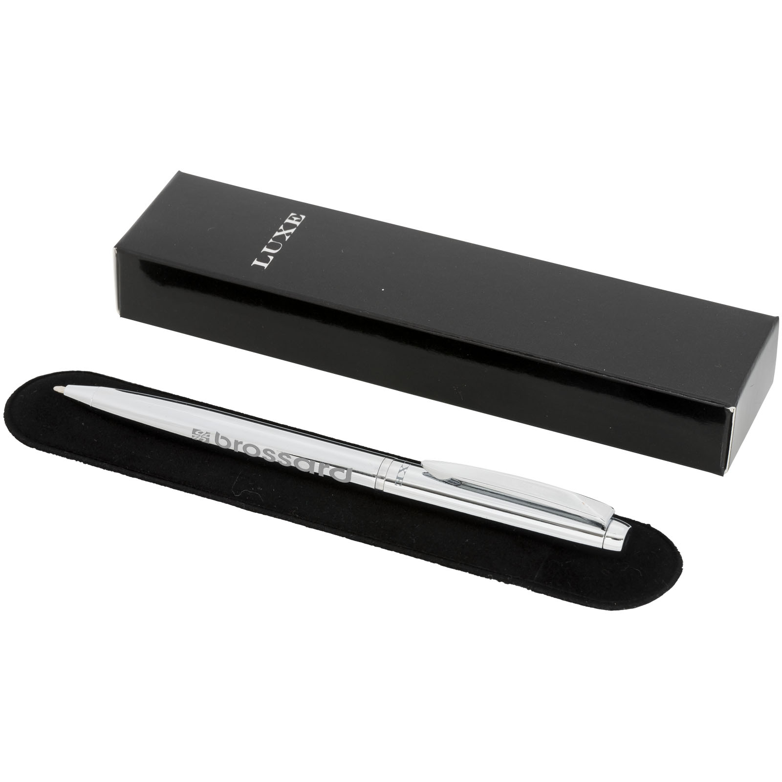 Exclusively designed ballpoint pen with shiny chrome accents. Incl. premium black ink refill and packed in a ''LUXE'' gift box (15x3.5x2 cm).