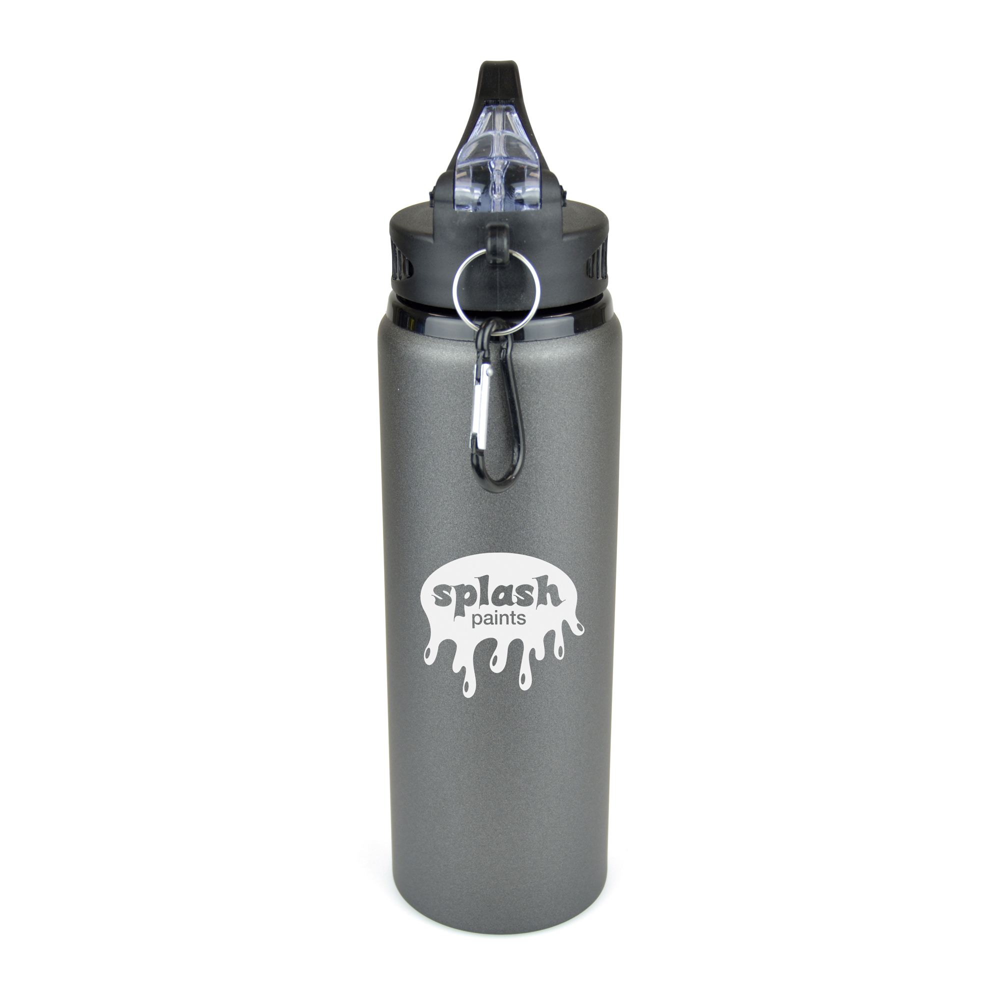800ml single walled, aluminium drinks bottle with a PP and PS plastic lid. Features include a large fold out sipper with straw and black carabiner clip. BPA & PVC free.