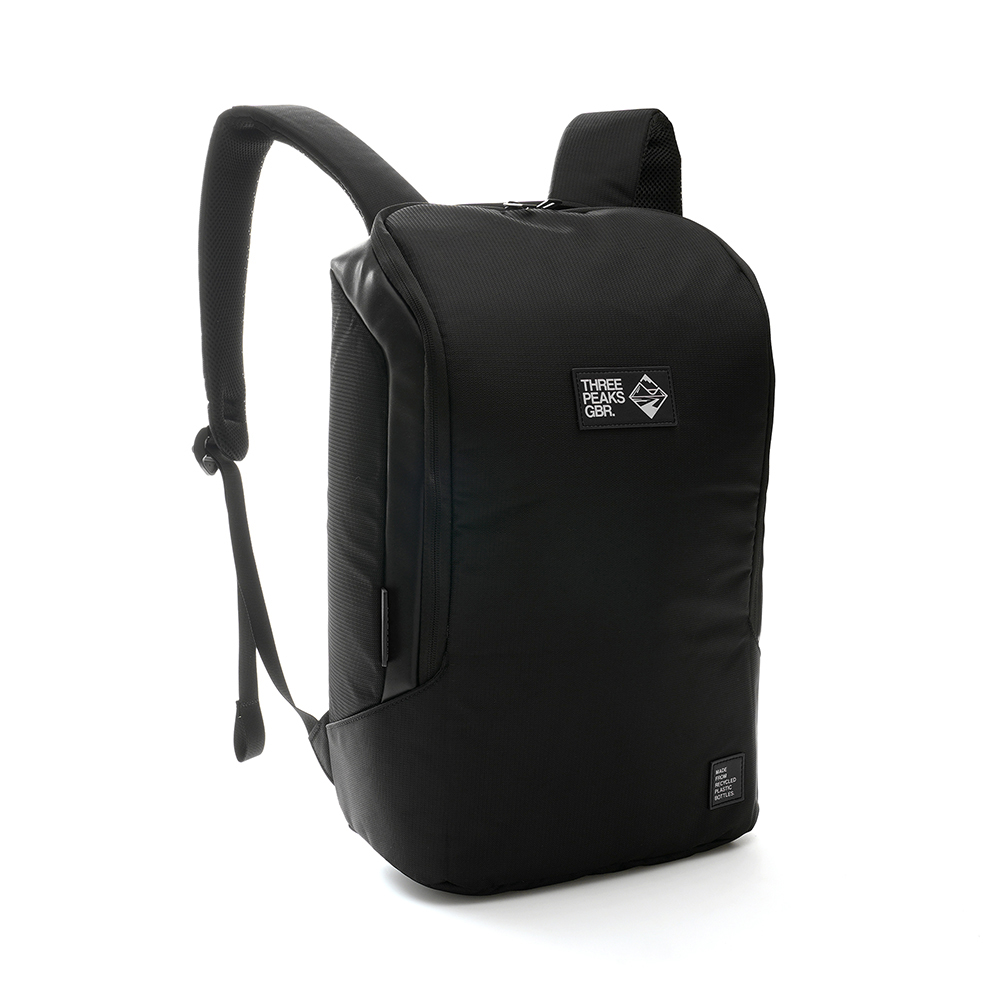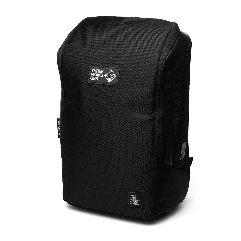Three Peaks® branded bag made from recycled PET single-use bottles. Large 22L storage with secure laptop compartment and anti-theft pocket with a tough water-resistant exterior. Ideal for travel with hand luggage size dimensions. Includes a USB charging port and luggage strap.