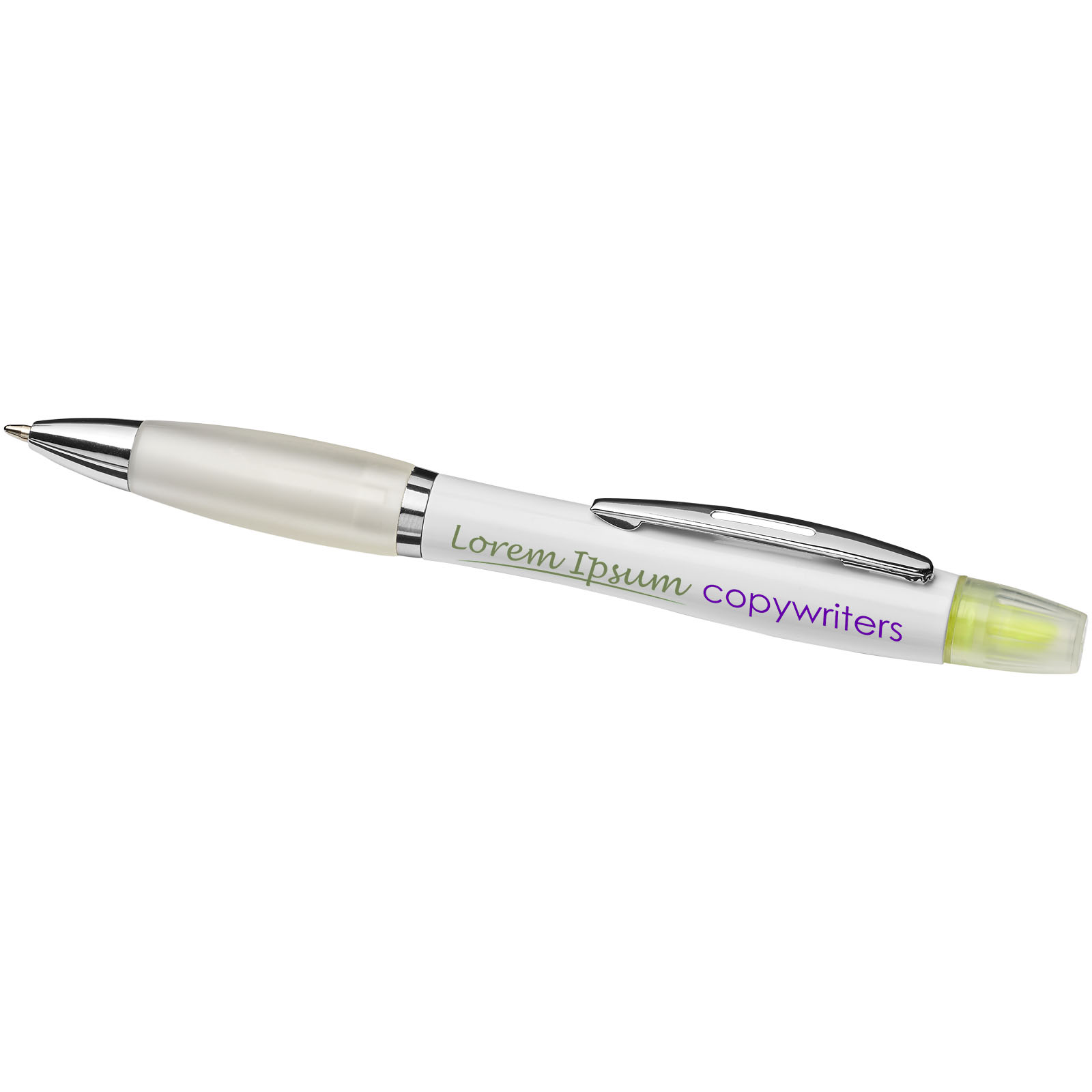 Curvy ballpoint pen with highlighter