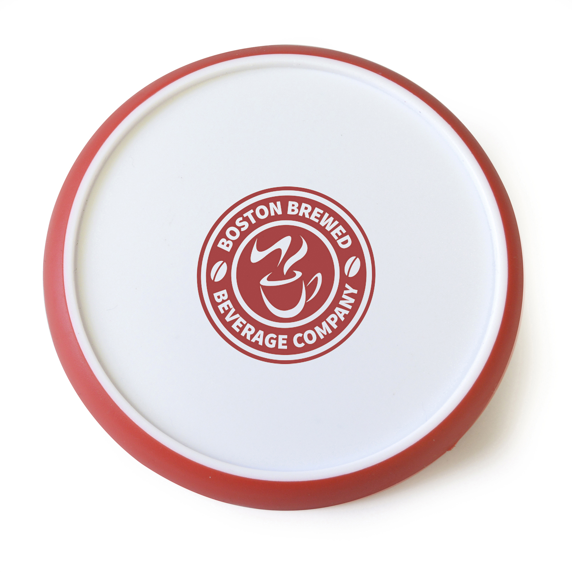Circular white plastic coaster with coloured silicone edge for a better grip. A great all round promotional giveaway and a fantastic personalisation area to promote your message.
