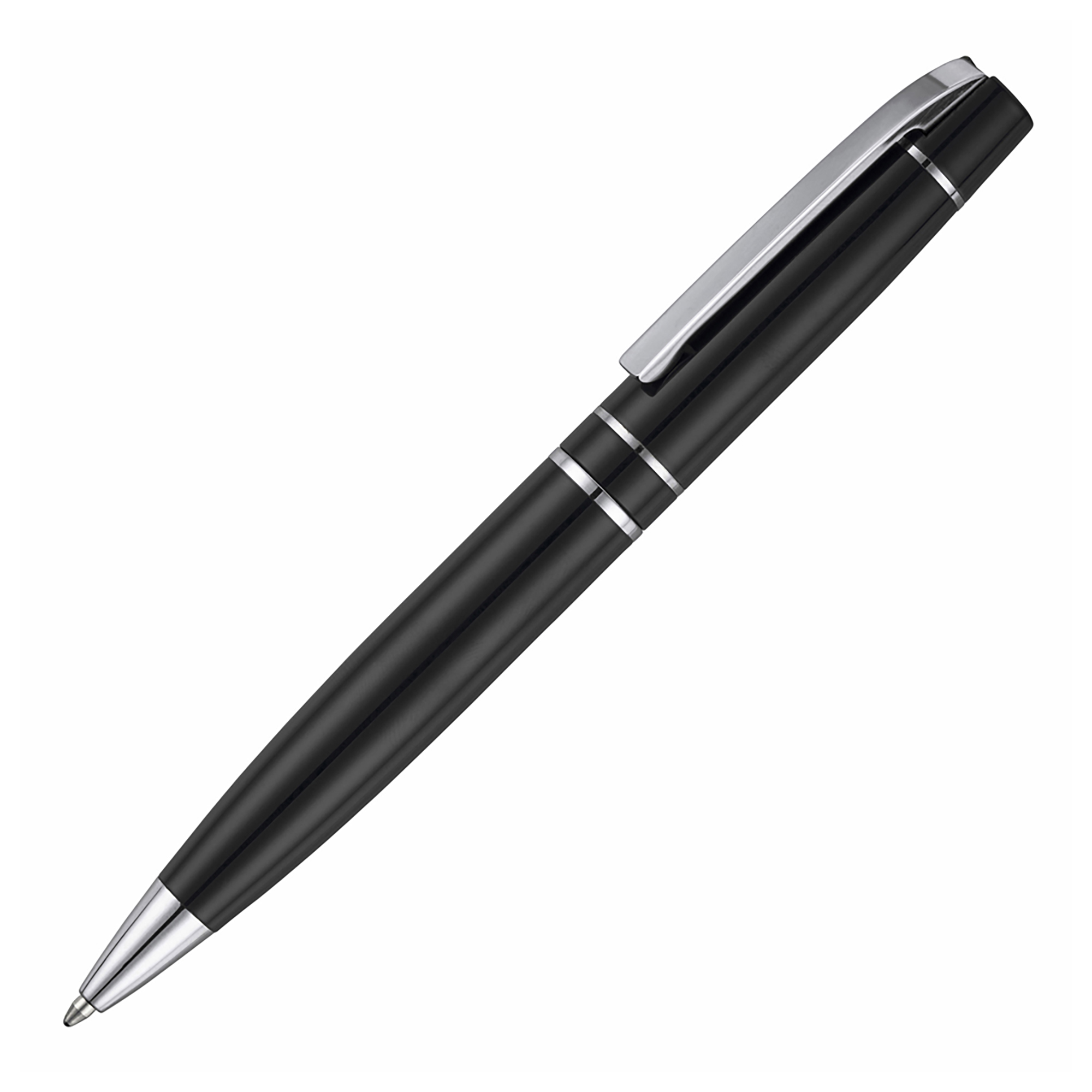 A robust yet elegant ball pen with a sublime twist action mechanism. Available in black, blue, silver or white - the smooth gloss barrel and chrome trim completes the high end feel.