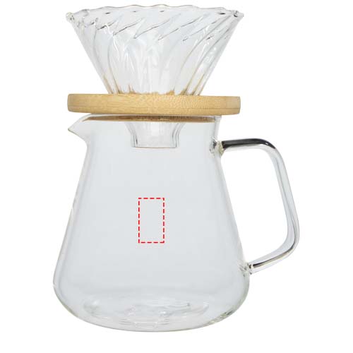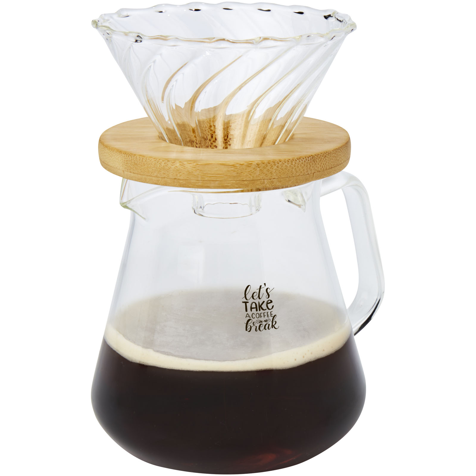 High-temperature-resistant glass espresso coffee maker with a capacity of 500 ml. The filter can be separated. Works with filter paper. The bamboo holder is from sustainable, environmentally, and socially responsible sources.