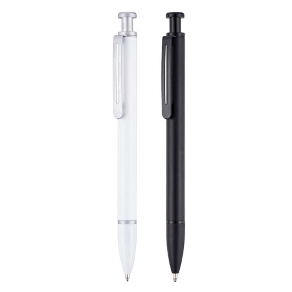A very well made metal pen in a modern design with a large print area. The black is undercoated chrome for a mirror chrome finish when engraved. (engraving is at an additional cost).