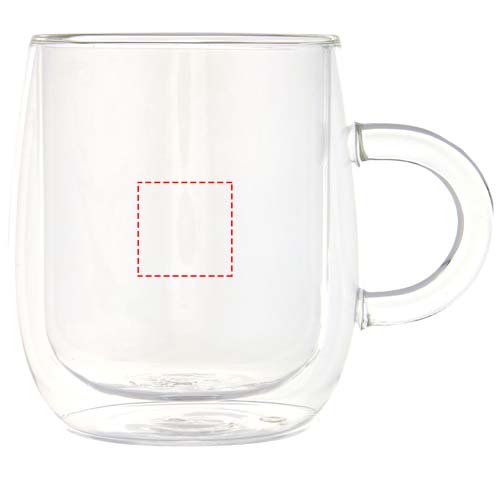 Double-walled 330 ml borosilicate glass mug, ideal for serving your favourite latte macchiato, hot chocolate or any hot drink. This mug is made of 100% durable borosilicate glass that conserves the freshness of the beverage, and it does not contain any harmful chemicals. Tested and approved under German Food Safe Legislation (LFGB), and tested for phthalates content according to REACH regulations. Volume capacity is 330 ml. Dishwasher safe. Presented in a recycled cardboard gift box.