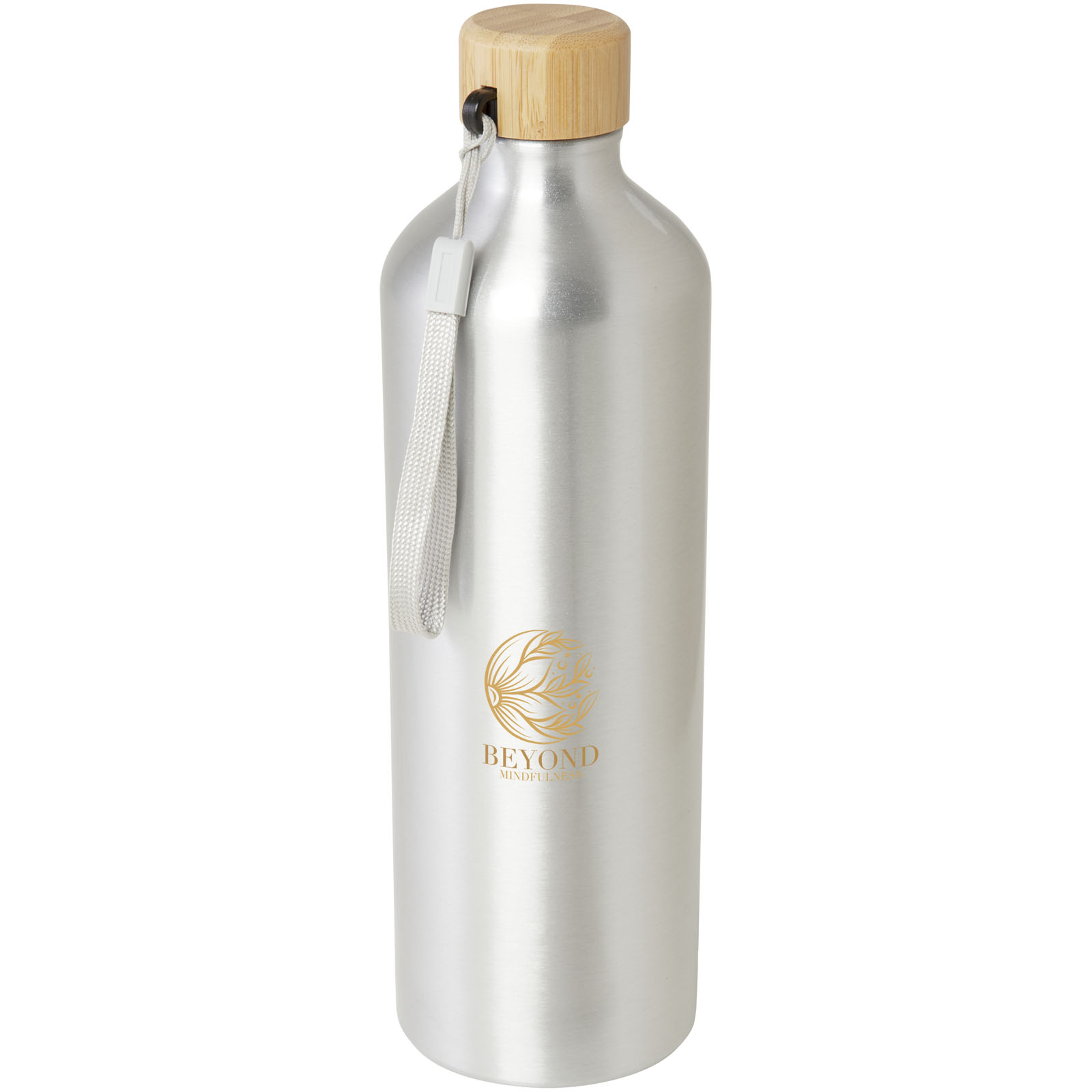 RCS certified recycled aluminium water bottle with a stylish bamboo lid. This lightweight, single-walled bottle comes with a strap for easy carrying. The bamboo is from sustainable, environmentally and socially responsible sources. Capacity is 1000 ml. Hand wash only.