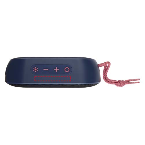 Powerful 7W IPX6 certified wireless speaker with RGB mood light, that is perfect for outdoor activities like a picnic, BBQ, beach or pool party. The built-in 1500mAh battery ensures up to 4 hours of playback time at max volume with RGB mood light ON. Bluetooth® 5.1 with a range up to 10 meters. Built-in microphone, pick-up function, and voice assistant for hands-free control. The speaker has an AUX jack and TF card slot (card not included). Delivered in a premium gift box.