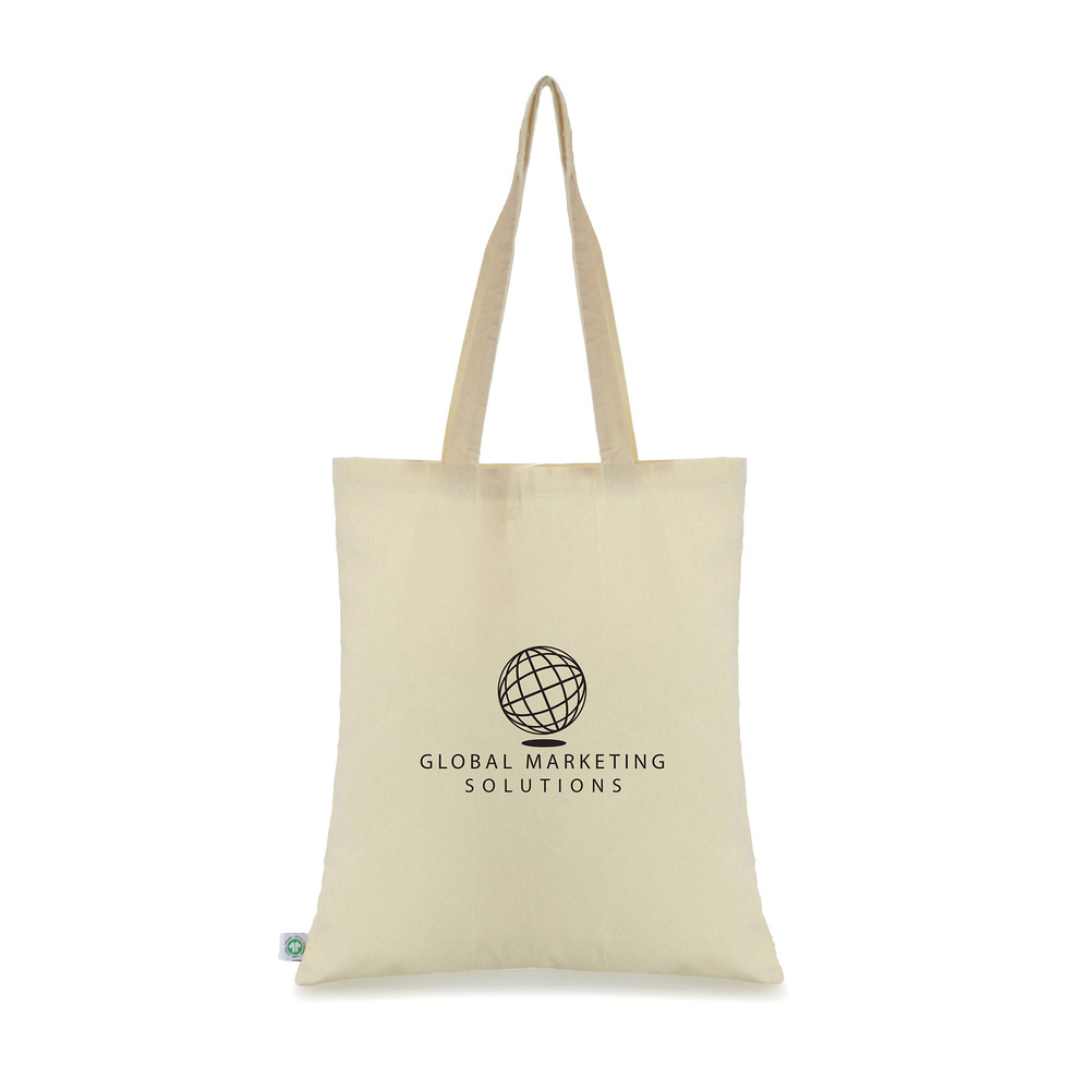 100% organic 5oz cotton shopper with long handles and a large branding area to show off your company logo. This promotional bag is made to Global Organic Textile Standard (GOTS) so you can be sure this is the perfect sustainable option for any type of giveaway.