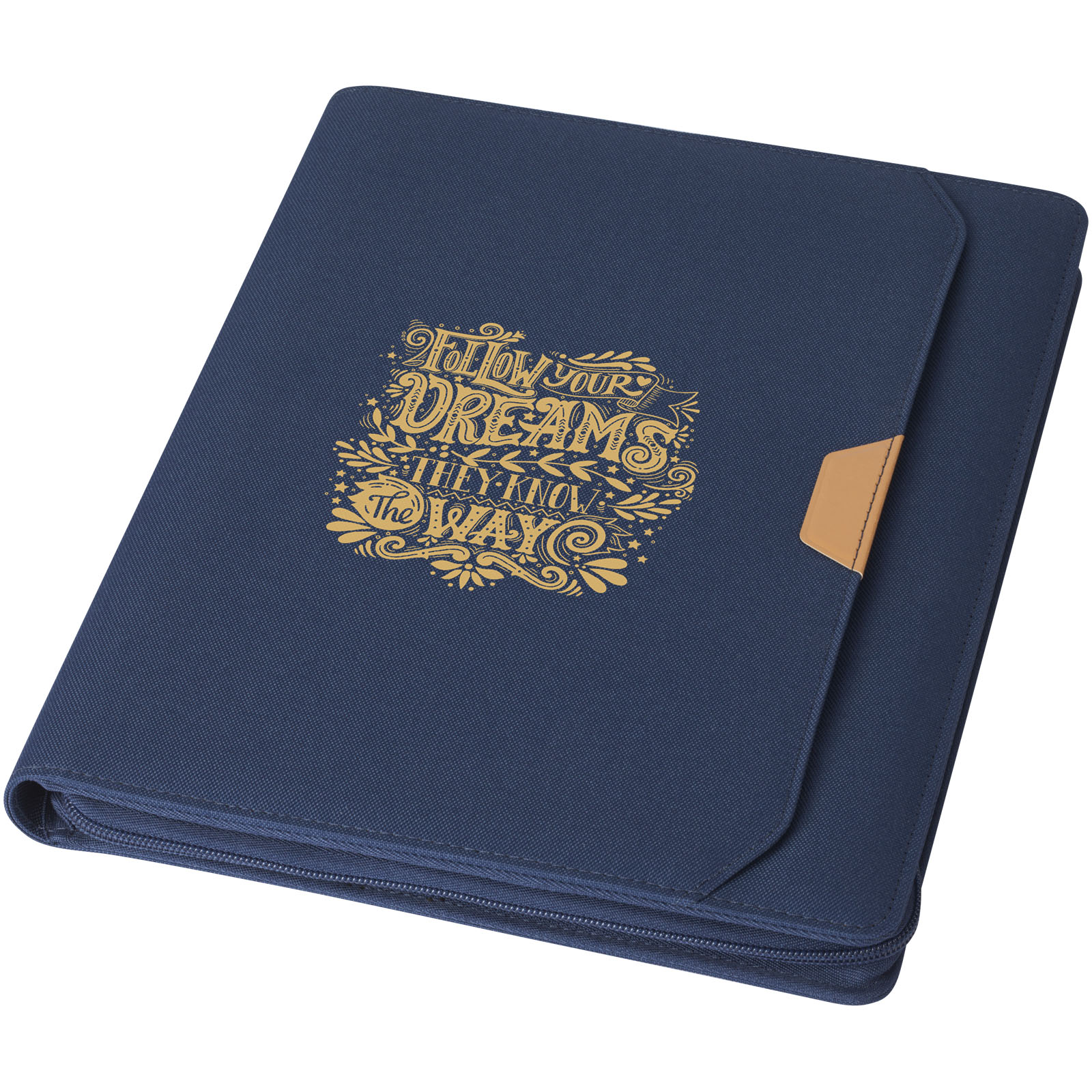 The RCS certified Nomumi portfolio is partly made from recycled post-consumer polyester, making this portfolio a more sustainable choice since it helps to reduce the use of virgin raw material. Featuring a zipper closure, pen loop, accordion pocket, and 20 white lined sheets with 70 g/m2 recycled paper from sustainable sources. The pen and other accessories appearing on the photos are not included with this item.