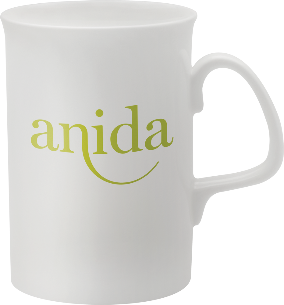 This slimline bone china mug is a popular choice for the promotional and corporate market.