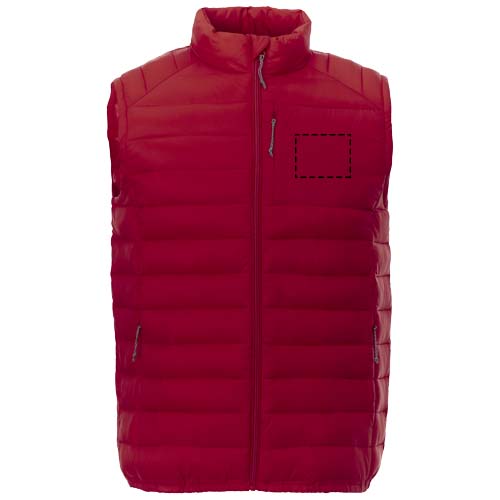 The Pallas men's insulated bodywarmer – a perfect blend of style and functionality. Stay protected from cold and wind with the inner stormflap featuring a chinguard. The bodywarmers's chest pocket with zipper closure provides a secure space for your essentials. The elasticated binding adds a stylish touch while ensuring a secure fit. Made of 38 g/m² of dull cire 380T nylon woven fabric, the bodywarmer offers a sleek and durable exterior. The padding and filling consist of fake down insulation made of polyester, providing lightweight warmth without compromising on comfort.