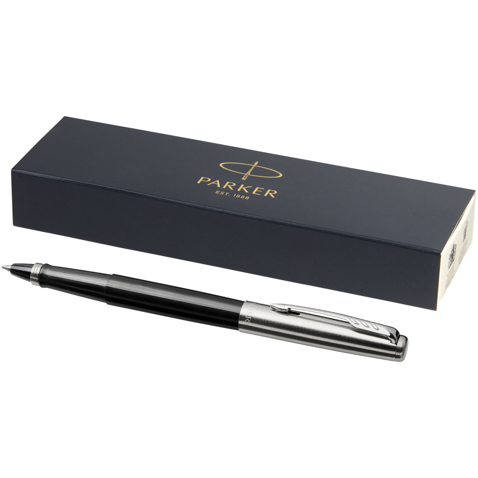 This Jotter rollerbal pen is a modern interpretation of the original icon featuring the iconic arrow clip and distinctive shape. Available in colours matching the bestsellers from the Jotter Core collection (106475/ 106477) and the new Jotter Originals colours. Packed in a Parker gift box.