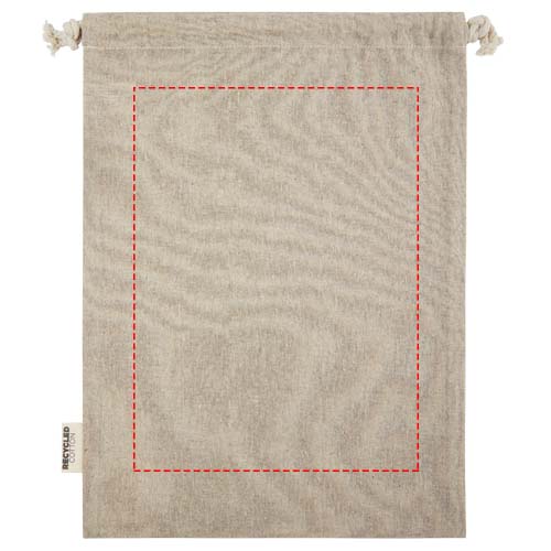 Gift bag made of GRS certified recycled cotton with cotton drawstring closure. Ideal for gifting or storing items. Size: 30 x 42 cm. There may be minor variations in the colour of the actual product due to the nature of the production process.