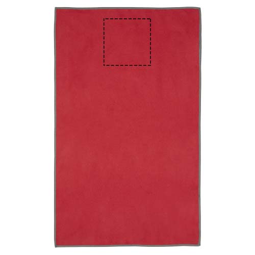 The Pieter sport towel absorbs very well, is lightweight, dries quickly, and the fabric is durable and extremely soft. When the towel is folded and secured with the elastic band it's reduced to a small size, making it suitable for bringing to the gym, swimming pool, or for when going backpacking or camping. The towel has a size of 50 x 30 cm and is made from 90% GRS recycled polyester and 10% nylon, and can be washed in the washing machine at 40 °C. Delivered with a storage pouch (15.5 x 10 cm) made from recycled PET plastic, which provides a great area for printing a logo.