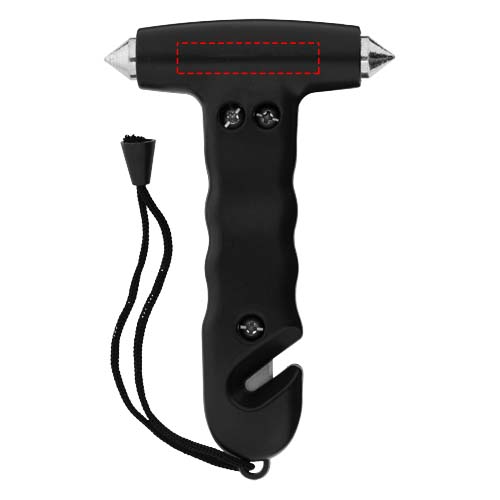 Emergency hammer with wrist strap and built-in belt cutter in the handle. Two pointed hardened steel window breakers and belt-cutter can be used to escape in case of an unfortunate situation.