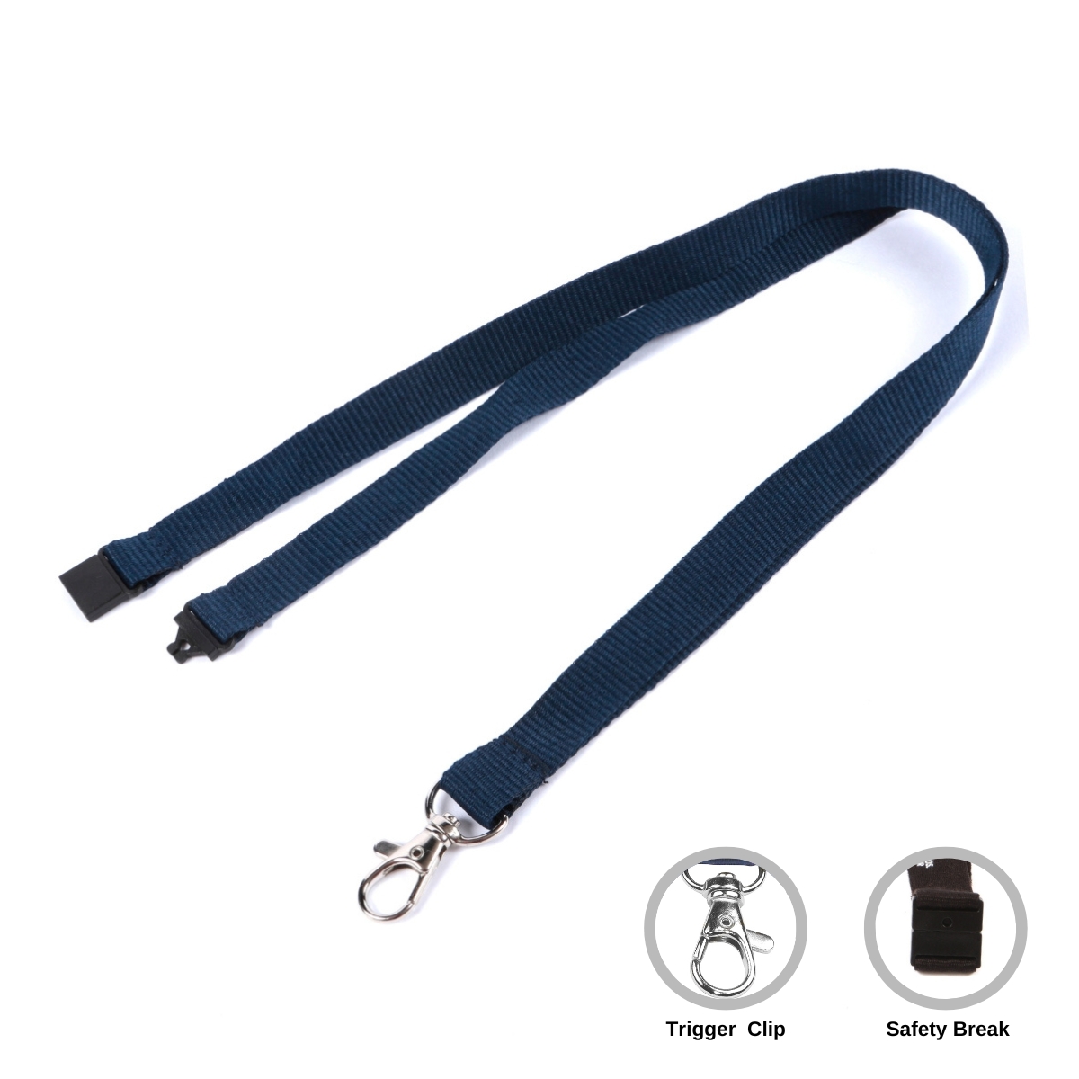 Made from 100% polyester, this plain lanyard will survive years of wear, making it a cost-effective means of securely carrying ID cards, keys, USB's or passes. The lanyard comes with a safety break and single trigger clip, onto which you can attach wallets and card holders if required.