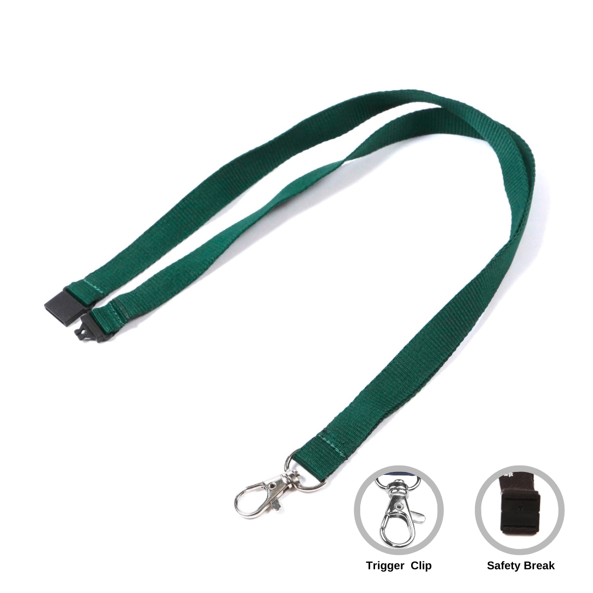 Made from 100% polyester, this plain lanyard will survive years of wear, making it a cost-effective means of securely carrying ID cards, keys, USB's or passes. The lanyard comes with a safety break and single trigger clip, onto which you can attach wallets and card holders if required.