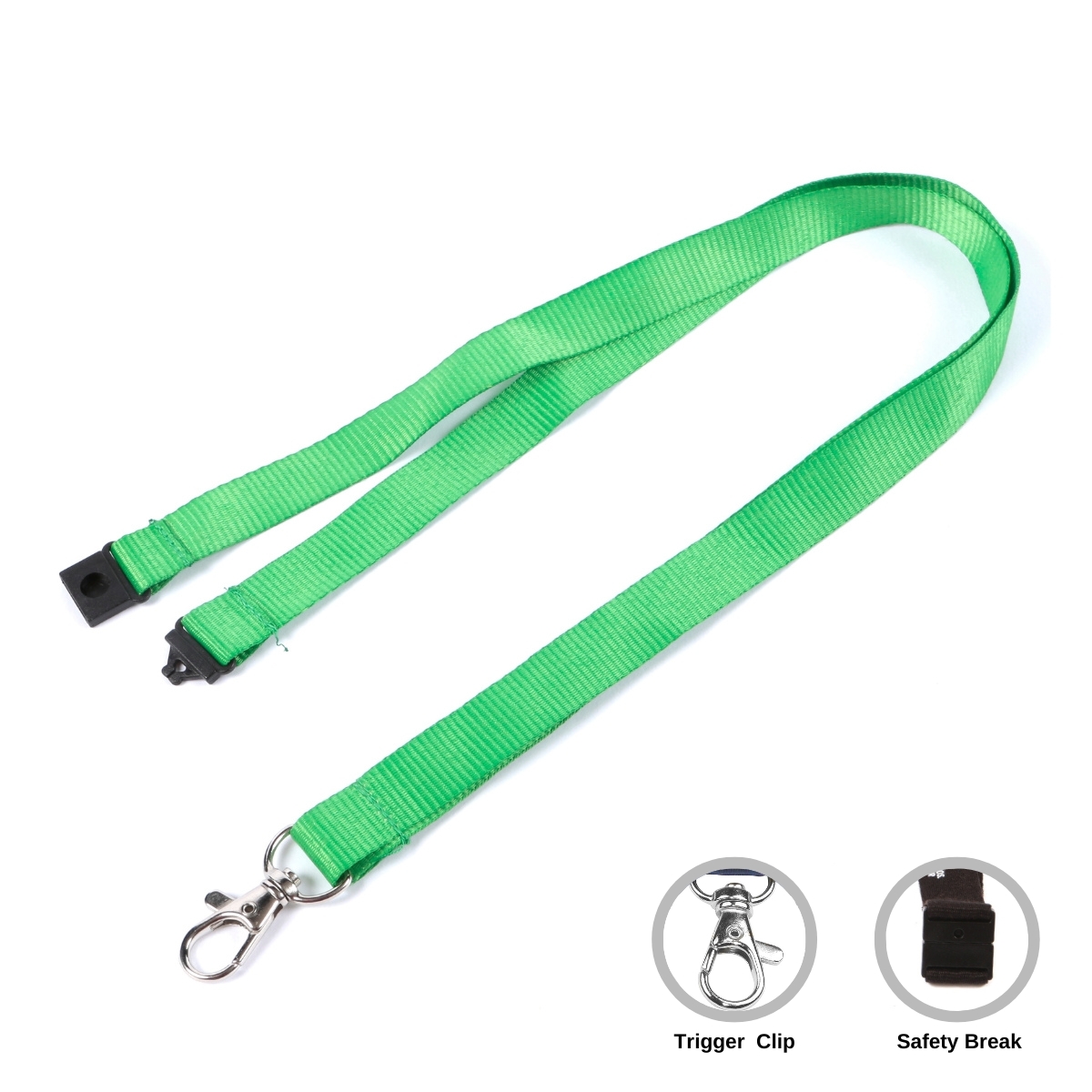 Made from 100% polyester, this plain lanyard will survive years of wear, making it a cost-effective means of securely carrying ID cards, keys, USB's or passes. The lanyard comes with a safety break and single trigger clip, onto which you can attach wallets and card holders if required.