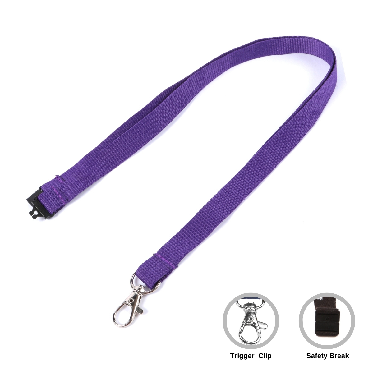 Made from 100% polyester, this plain lanyard will survive years of wear, making it a cost-effective means of securely carrying ID cards, keys, USB's or passes. The lanyard comes with a safety break and single trigger clip, onto which you can attach wallets and card holders if required.