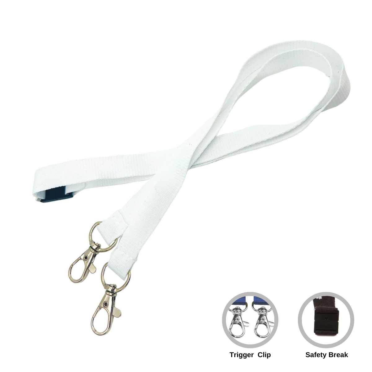 The plain white double clip lanyard is hugely popular and ideal for holding the larger format ID cards that are popular at conferences and events. It’s a generous 15mm width, which creates a quality feel, yet it is lightweight and comfortable for everyday wear.
