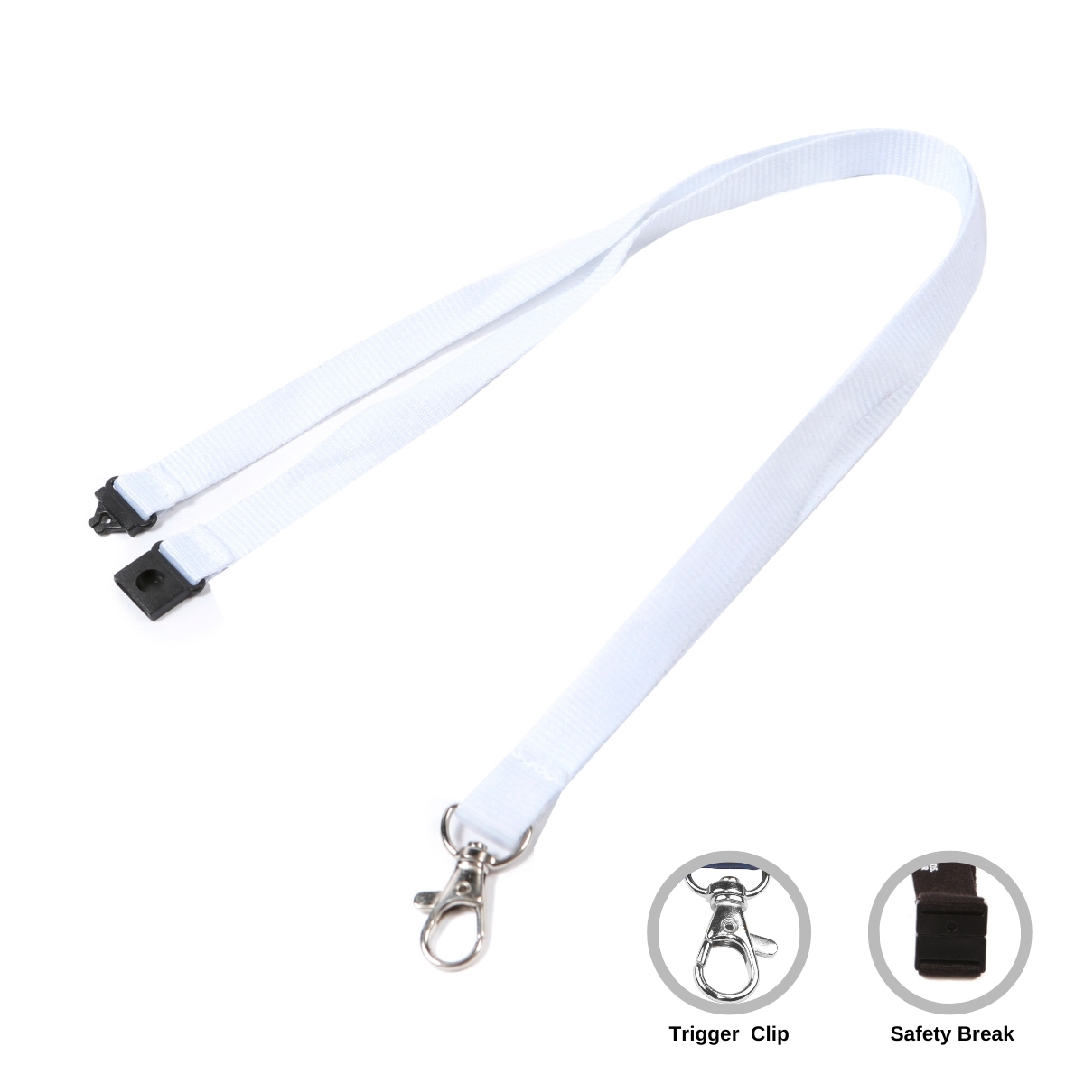 Made from 100% polyester, this plain lanyard will survive years of wear, making it a cost-effective means of securely carrying ID cards, keys, USB's or passes. The lanyard comes with a safety break and single trigger clip, onto which you can attach wallets and card holders if required.
