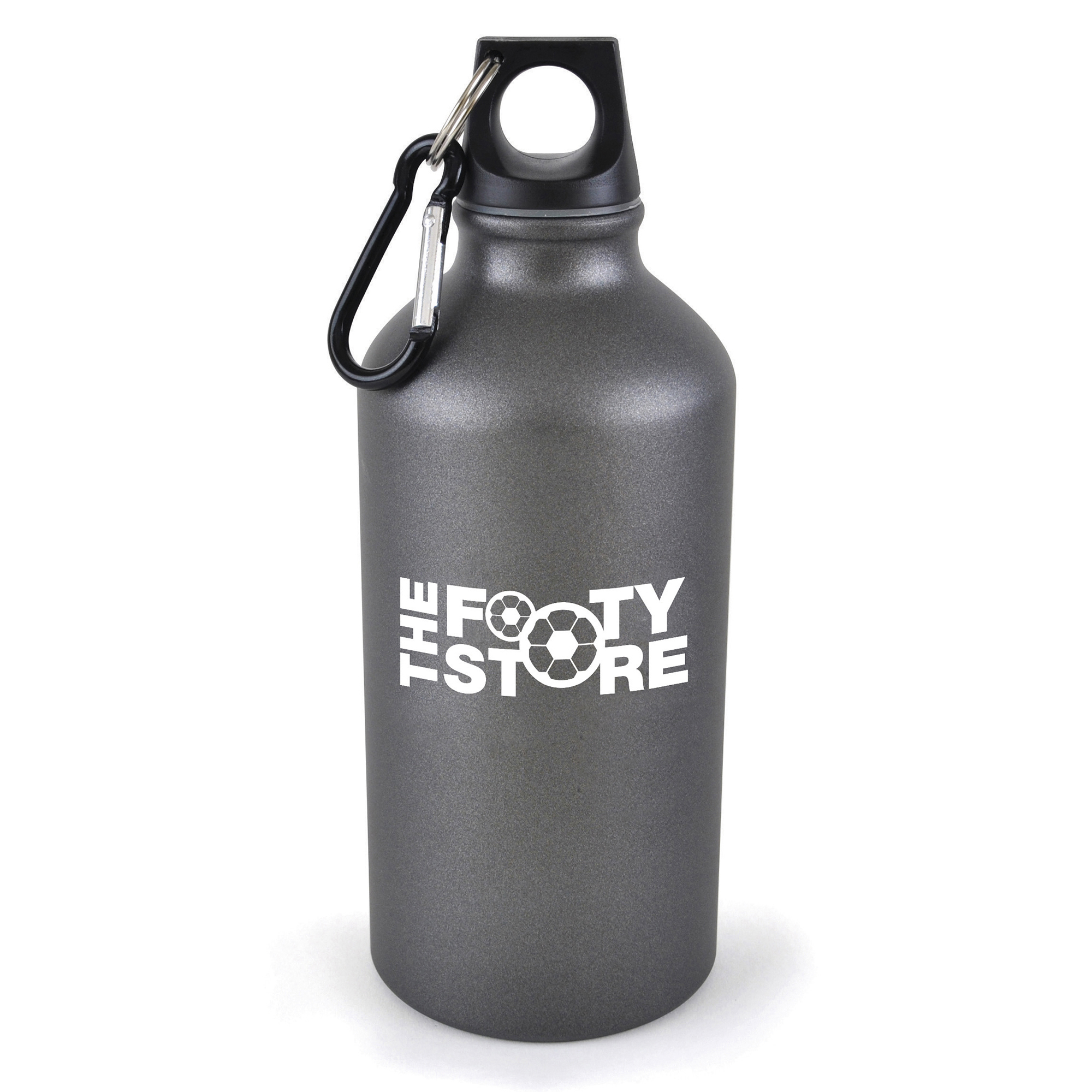 550ml single walled, matt frosted effect aluminium sports bottle with a black PP plastic screw on cap and black carabiner clip. A great giveaway for sports teams and those who love outdoor activities. BPA & PVC free.