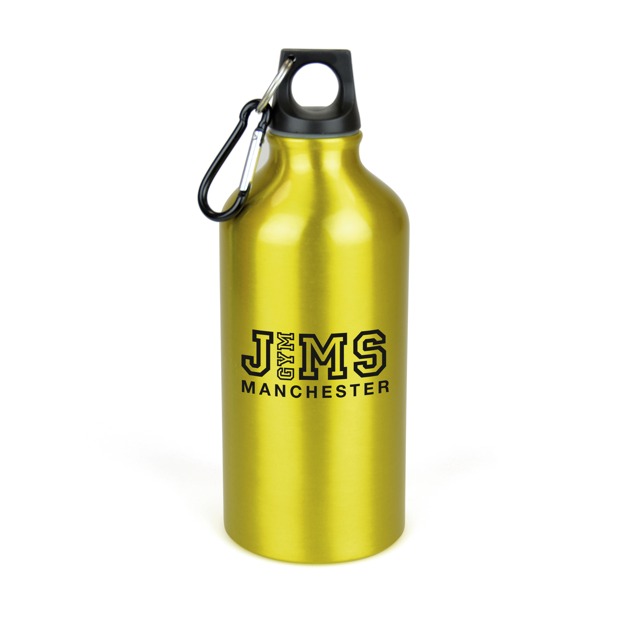 550ml single walled, aluminium drinks bottle with a black PP plastic screw on cap and black carabiner clip. BPA & PVC free. Available in 11 colours