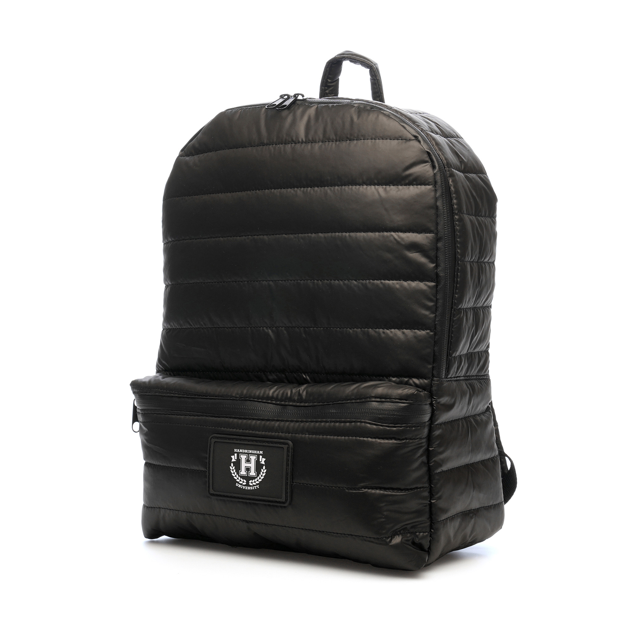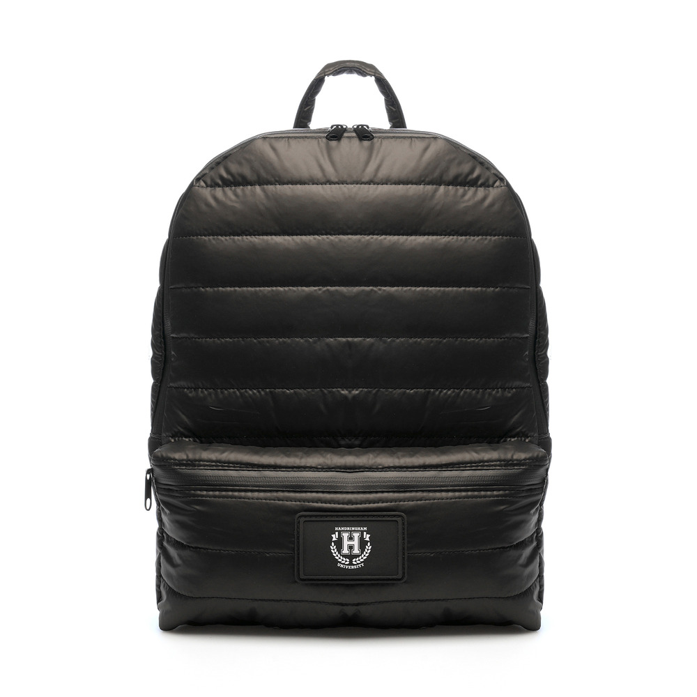 Polyester ‘bubble’ rucksack with front zipper pocket and padded, adjustable shoulder straps. There is a faux leather patch stitched to the front pocket for your company logo.