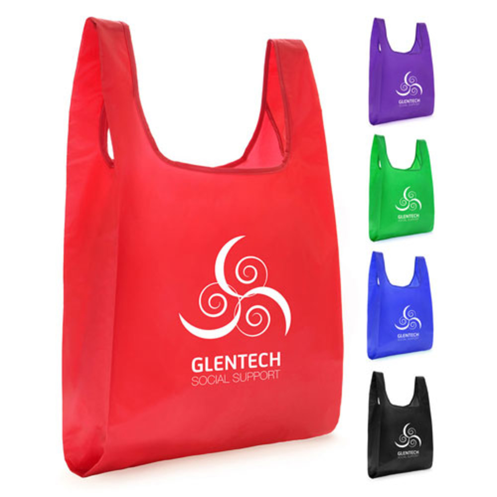 Made from 100% recycled plastic, this RPET shopper folds away into a pouch in the inside of the bag for easy storage in your pocket or handbag. Lightweight, durable and eco-friendly, this reusable shopper helps eliminate the need for single-use plastic bags and after a long lifespan, can be recycled again. Add your logo to this must-have shopping accessory.