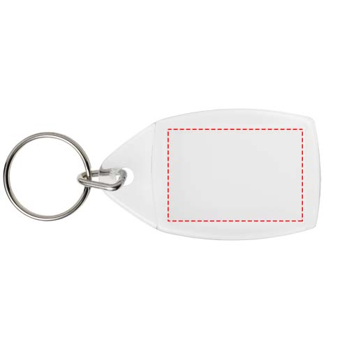 Clear keychain with metal split keyring. The metal looped ring offers a flat profile which is ideal for mailings. Print insert dimensions: 3,5 cm x 2,4 cm.