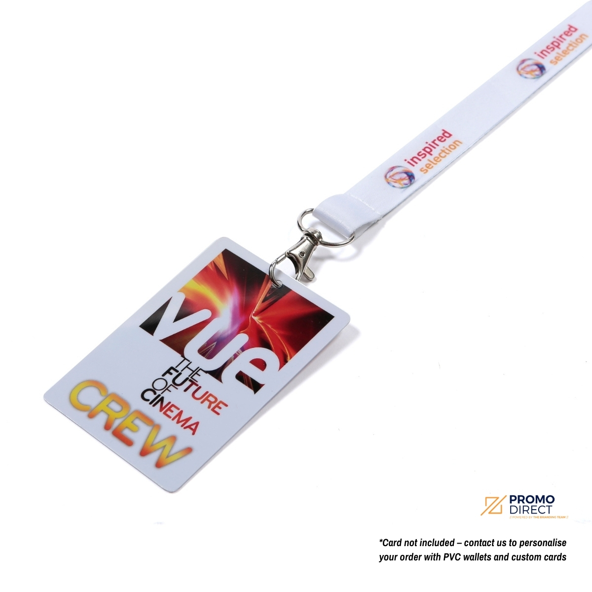 • Printed on both sides of lanyard with a massive range of background colours to choose from for simpler designs