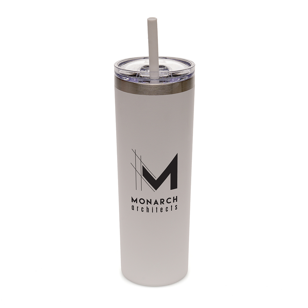 580ml double walled stainless steel RCS certified tumbler with clear PS push on lid and silicone straw to prevent spills. A stylish promotional product for those who travel or are constantly on the go. BPA & PVC free.