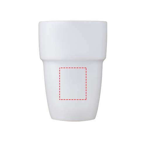 Gift set of four ceramic mugs that are stackable so that they take up as little space as possible and are neatly organized at the office or at home. Volume capacity is 280 ml. Dishwasher safe for all printing methods. Presented in a recycled cardboard gift box.