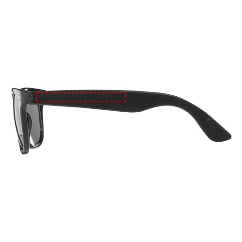 These retro-designed sunglasses are the ideal promotional giveaway during summer festivals, events or other sunny outdoor activities. This eyewear conforms to EN ISO 12312-1, has UV400 lenses which are rated as Category 3, making it the perfect choice for protection against bright sunlight. Thanks to the PC plastic material, the sunglasses are lightweight and comfortable to wear.