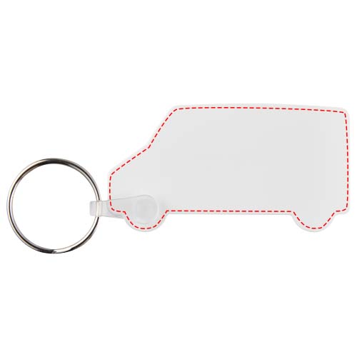 White van-shaped keychain with metal split keyring. The metal looped ring offers a flat profile which is ideal for mailings.