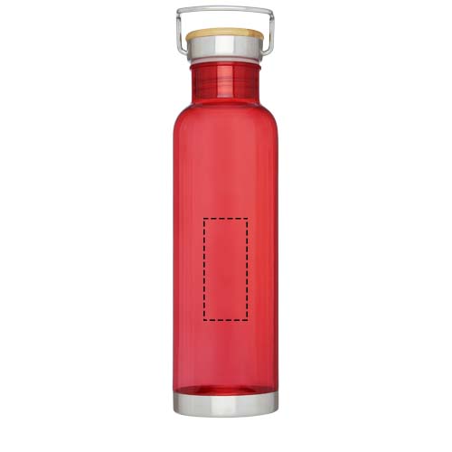 Single-walled water bottle in durable Tritan™ material. Shatter, stain, and odour resistant. Features a screw-on lid with bamboo top, as well as a handle for easy carrying. BPA free. Volume capacity is 800 ml. Presented in an Avenue gift box.