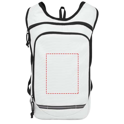 Made from 100% GRS recycled and water repellent fabric, the Trails backpack features one zippered front pocket and one zippered main compartment, and is compatible with a hydration water bladder. Reflective stripes for visibility and mesh backside for carrying comfort , making it a great sustainable choice for outdoor activities.