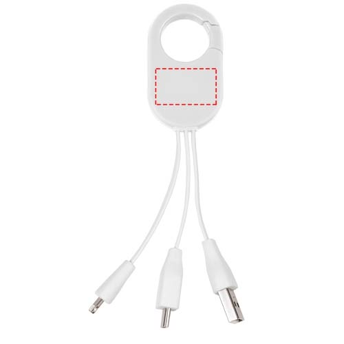 The Troop 3-in-1 charging cable features a USB type C tip and a 2-in-1 dual compatible tip for both Apple® iOS and Android devices. It has a carabiner clip to easily hook on your bag.
