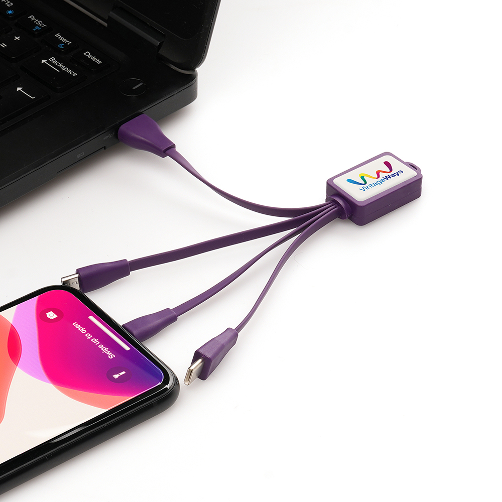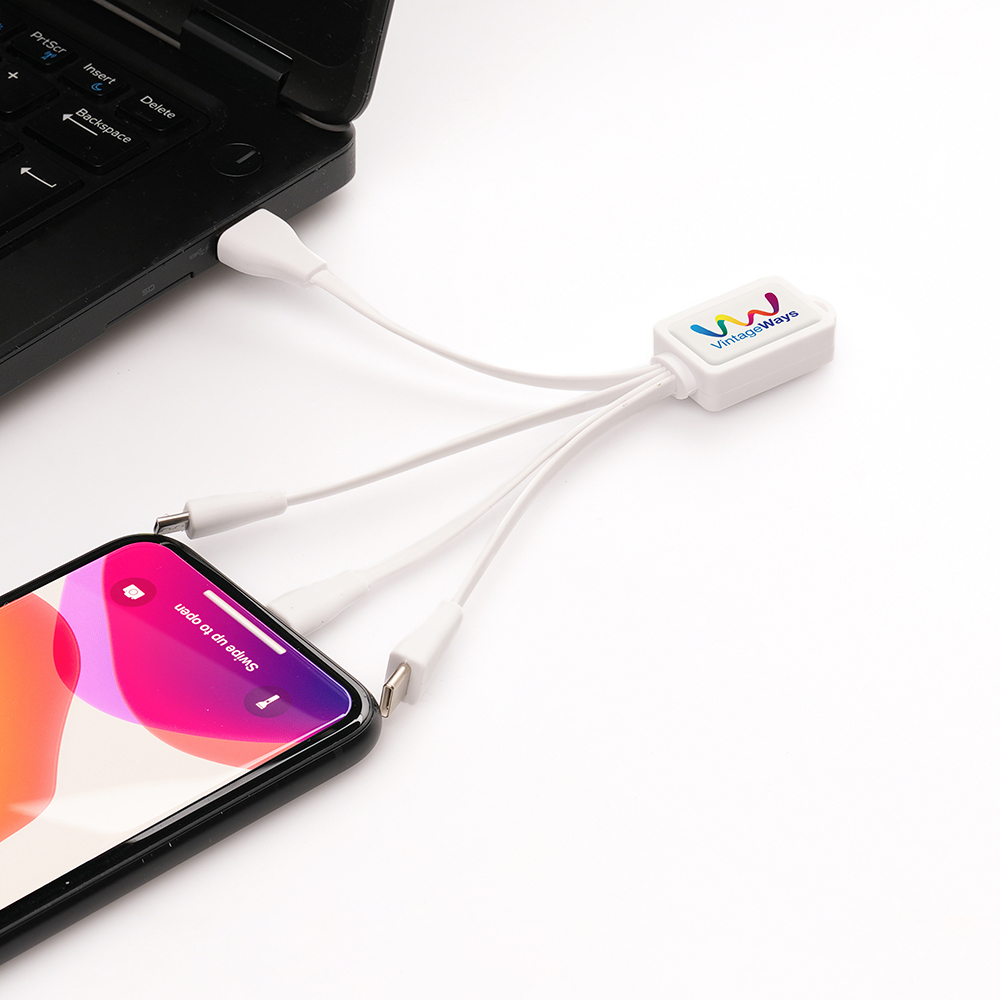 You can now have multiple charging cables all on one unit, perfect for when you're out and about. A pocket sized essential including USB, 5 pin (iPhone), type C android and micro USB connectors.