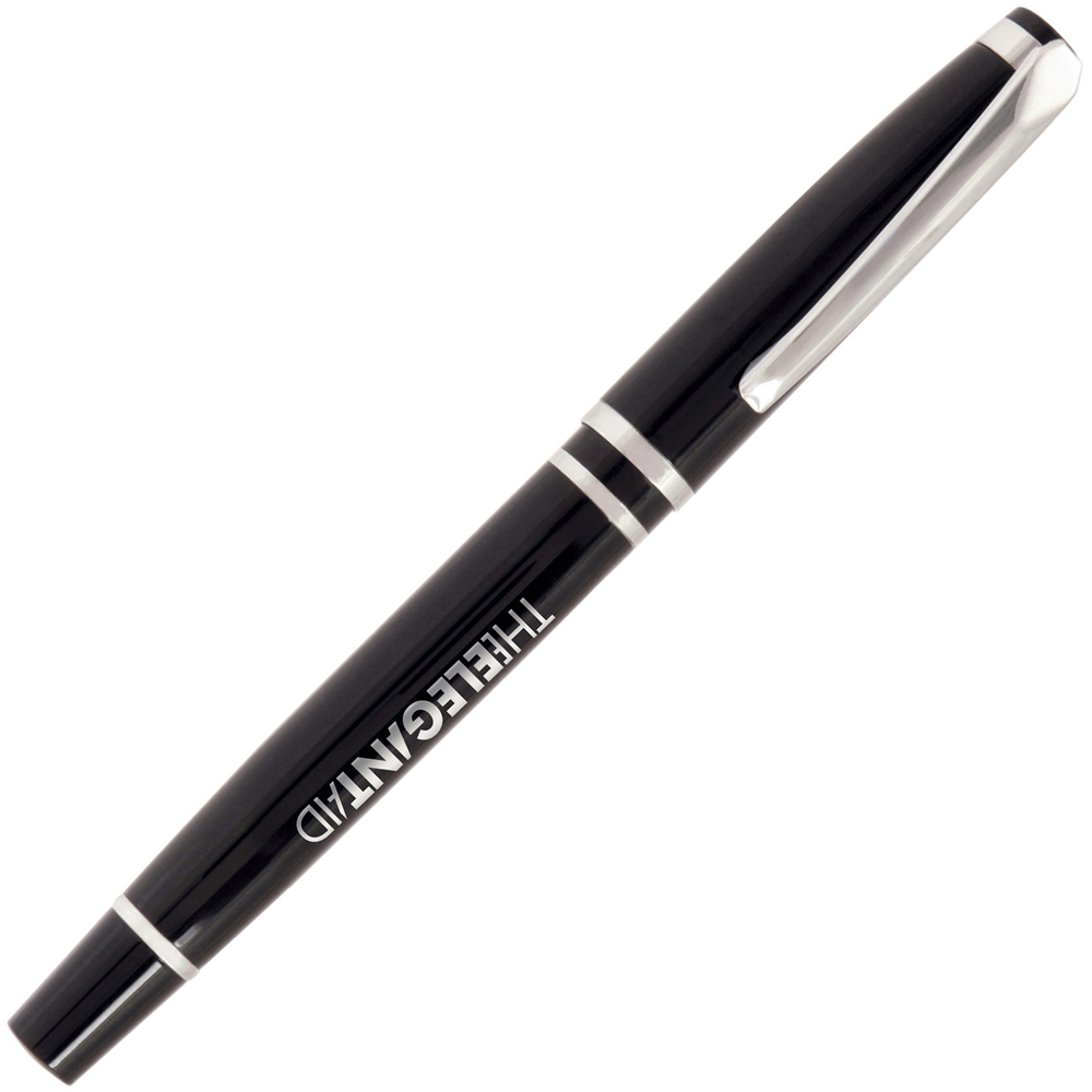 A prestigious, high gloss capped roller pen in a classical style. The pen has a chrome undercoat to the top and bottom barrel for a mirror finish when engraved (available at an additional cost). Can be supplied on its own or as a set with the matching ball pen or pencil.