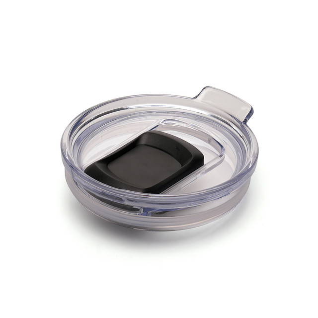 360ml double-walled stainless steel travel mug with handle. Features PS plastic clear push-on lid, PP plastic slide-down black sipper, powder coating and a cork bottom. Perfect for those who are constantly on the go and need a reliable container for their beverages. BPA & PVC free.